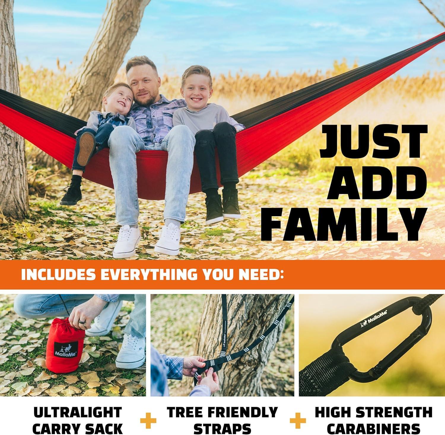 MalloMe Camping Hammock for Adults & Kids – Portable Hammocks for Outside – Hamacas para Adultos Outdoor Single & Double Two 2 Person Hammock – Hamaca/Hamacs/Amacas Heavy Duty Tree Travel Hamock