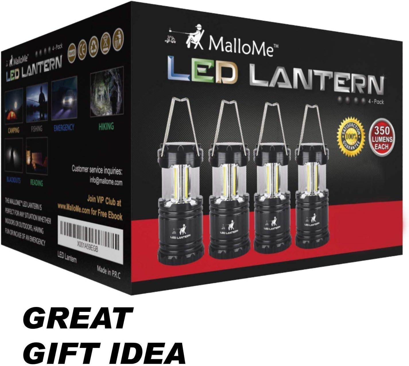 Life Saver in All Situations: Enjoy the great outdoors without second guessing if you packed everything for your nights – with over 100,000 hours of LED bulb life span they out do any candle camp lamp, with the lightweight, compact, and portable design, the MalloMe LED Lantern is a multi-purpose essential whether as a work light, book light, reading light, hurricane lantern, emergency outages and blackouts light, car auto emergency light kit, bug out bag lamp, or just for outdoor lighting fun