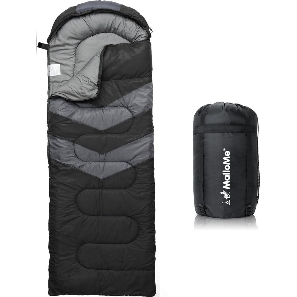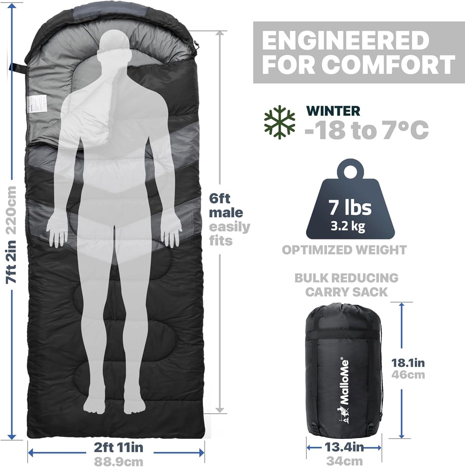 MalloMe Sleeping Bags for Adults Cold Weather & Warm – Backpacking Camping Sleeping Bag for Kids 10-12, Girls, Boys – Lightweight Compact Camping Essentials Gear Accessories Hiking Sleep Must Haves(0-45°F XL Winter – Black)