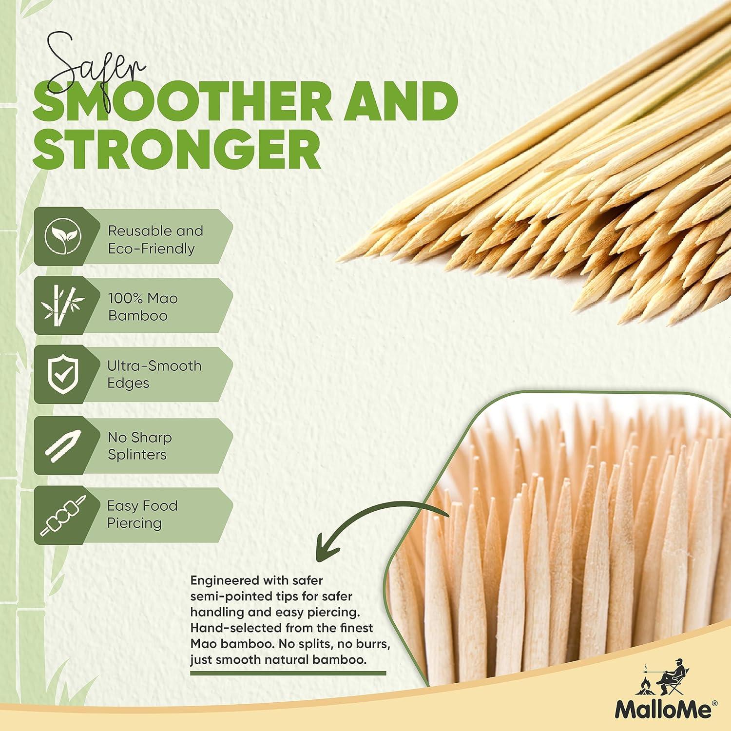 HEAVY DUTY and STRONG- MalloMe Skewers are available in 4mm and 5mm thick sizes, offering the durability needed for high-heat cooking and grilling. These are highly strong and completely safe to be used with all foods for all occasions.